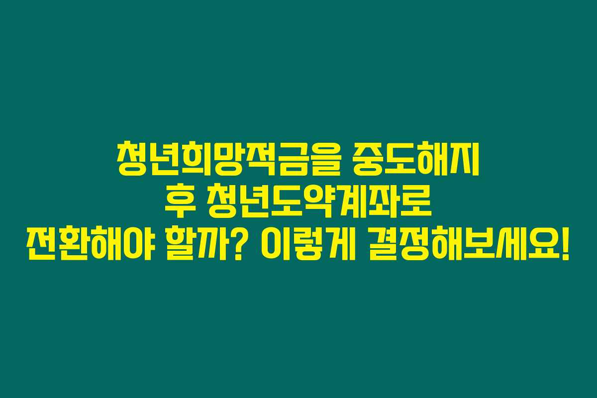 청년희망적금과 청년도약계좌의 선택은 개인의 상황에 따라 달라집니다. 중도해지를 고려하기 전에, 두 상품의 특징과 혜택을 잘 분석하는 것이 중요합니다. 청년들이 재정적 안정을 통해 더 나은 미래를 구축할 수 있기를 바랍니다!