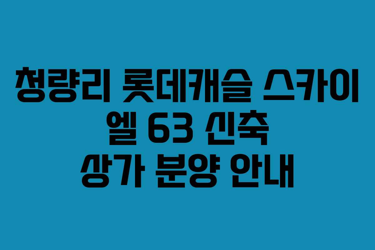 서울 동대문구 전농동에 위치한 청량리 롯데캐슬 스카이 엘 63의 신축 상가 분양이 곧 이루어집니다. 이 상가는 청량리역과 인접하여 많은 관심을 받고 있습니다.