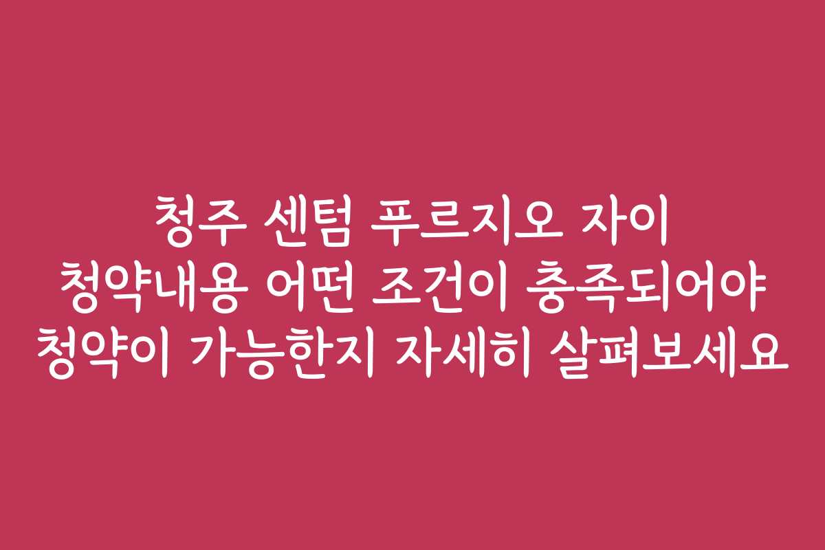 - 청주 센텀 푸르지오 자이 청약, 기본 조건은 무엇인가?
