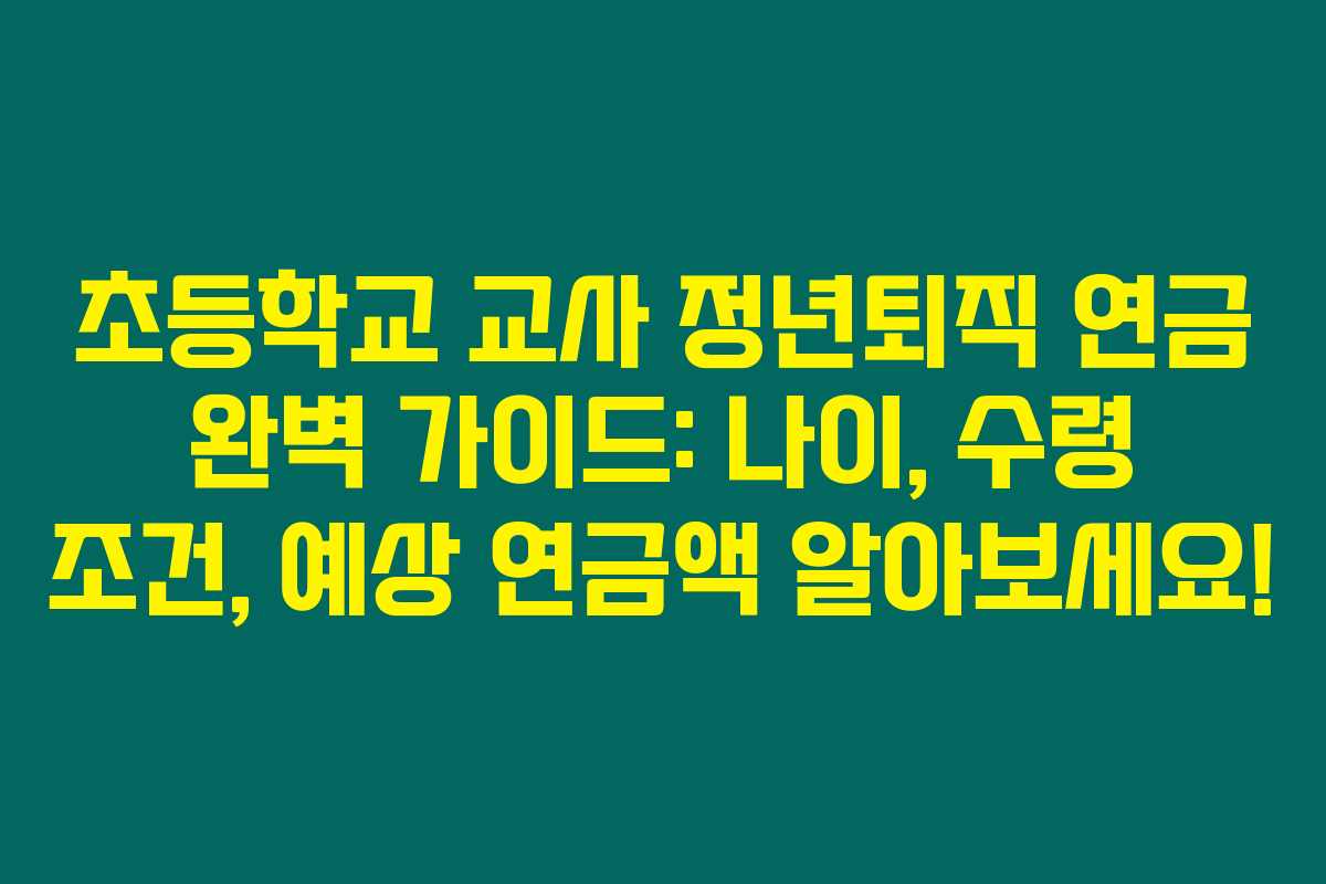 초등학교 교사 정년퇴직 연금 완벽 가이드: 나이, 수령 조건, 예상 연금액 알아보세요!