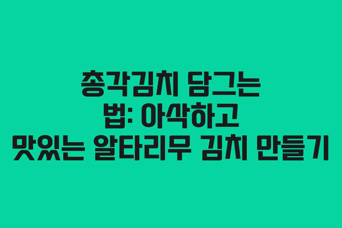김장 시즌이 다가오면 많은 가정에서 김장김치를 담그느라 바쁜 시간을 보내게 됩니다. 특히 알타리무로 담그는 총각김치는 그 아삭한 식감과 풍부한 맛 덕분에 많은 사랑을 받고 있습니다. 이번 글에서는 알타리무 김치 담그는 법을 자세히 소개하겠습니다.