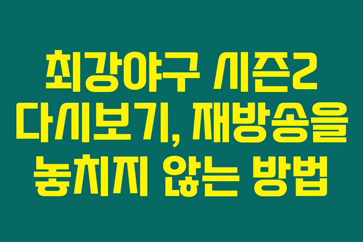 최강야구 시즌2 다시보기는 여러 가지 플랫폼을 통해 가능해요. 이 인기 프로그램에 대한 여러 방송과 재방송 방법을 알아보면서 편리하게 시청해보세요. 여러분이 경험한 궁금증을 해결할 수 있는 정보도 제공할게요.