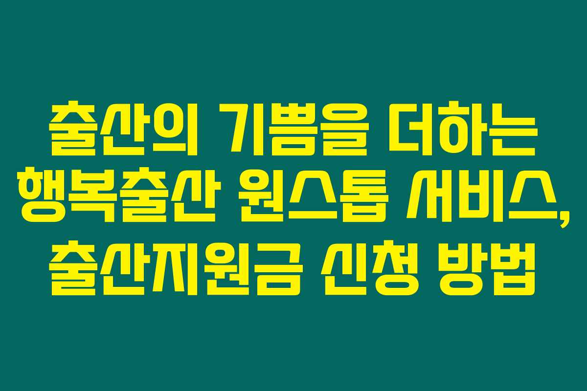 아래를 읽어보시면 행복출산 원스톱 서비스에 대해 알아본 결과, 출산을 준비하는 모든 부부에게 도움이 될 만한 다양한 지원금과 신청 방법을 자세히 설명해드릴게요. 이 서비스를 통해 소중한 시간을 절약하고 보다 행복한 출산을 준비하세요!