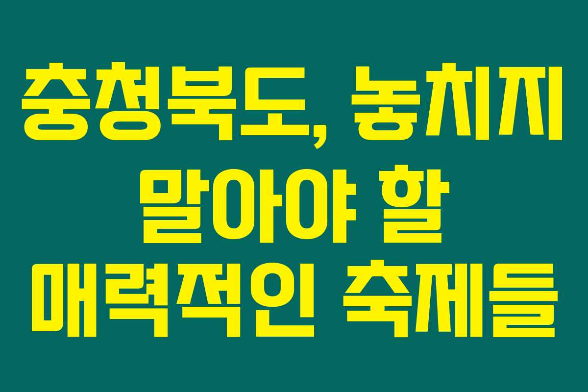 충청북도의 축제는 그 지역의 역사와 문화를 체험할 수 있는 또 다른 재미입니다. 아름다운 자연 속에서 펼쳐지는 다채로운 축제들을 만나보세요!