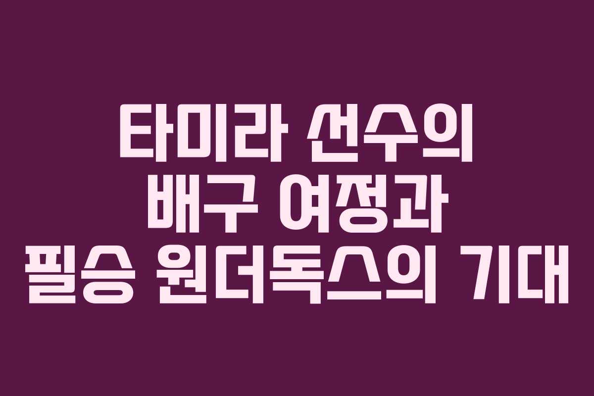 타미라 선수의 활약은 앞으로 더 기대가 됩니다. 김연경 감독의 지도 아래 그녀가 얼마나 더 성장할지, 그리고 팀이 어떤 성과를 이룰지 주목할 만합니다. 주말마다 방송되는 ‘필승 원더독스’는 배구 팬들에게 큰 즐거움을 주고 있으며, 타미라 선수의 매력적인 플레이는 그 중에서도 빼놓을 수 없는 요소입니다.