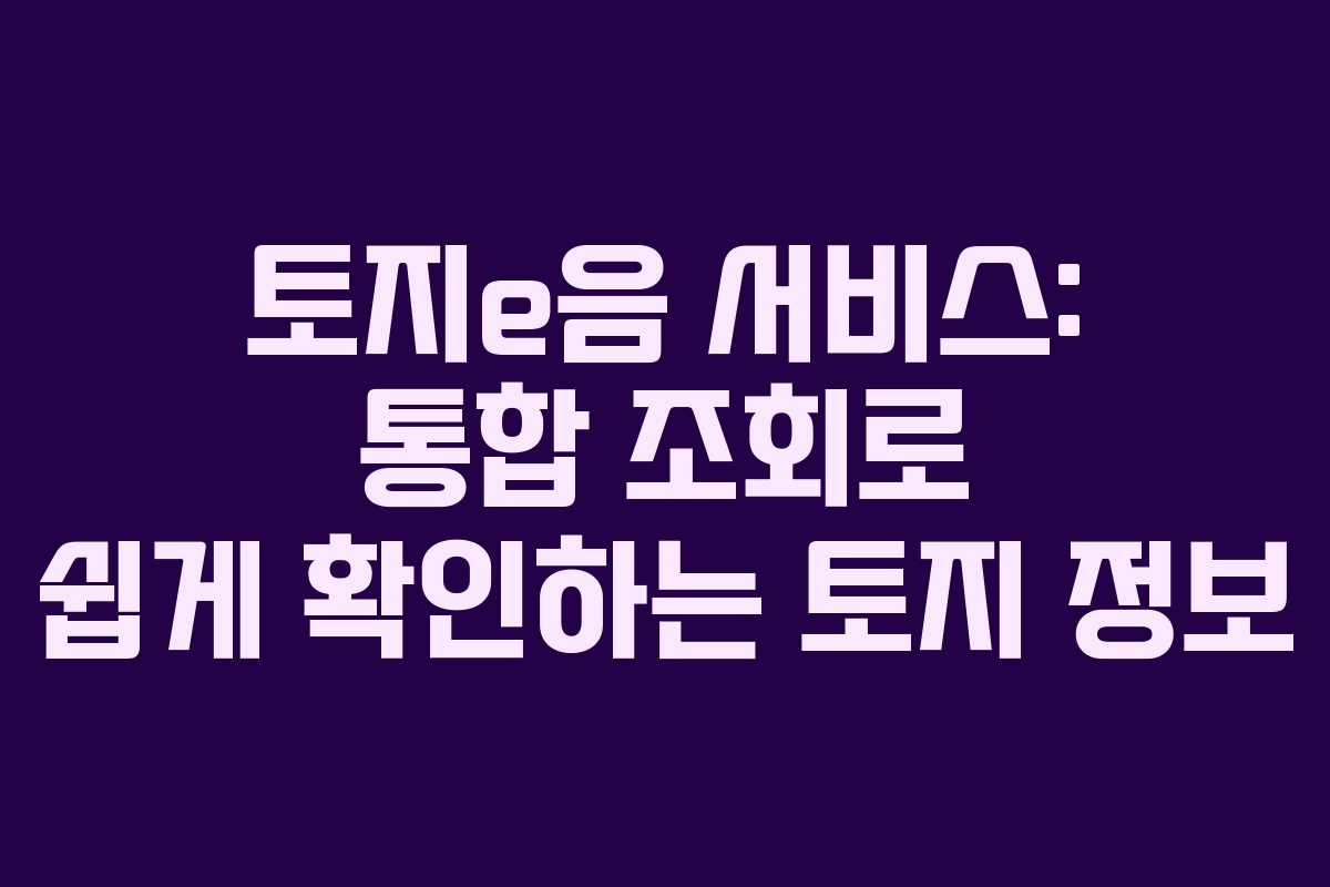 토지e음 서비스: 통합 조회로 쉽게 확인하는 토지 정보