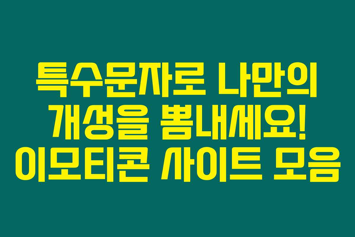 특수문자로 나만의 개성을 더하고 싶으세요? 인스타그램이나 블로그 그리고 카카오톡 상태 메시지에서 활용할 수 있는 유용한 특수문자 이모티콘 사이트를 모았습니다. 특수문자를 활용해 나만의 유니크한 스타일을 만들어보세요! 아래를 읽어보시면, 각 사이트의 특징과 활용법을 쉽게 이해할 수 있습니다.