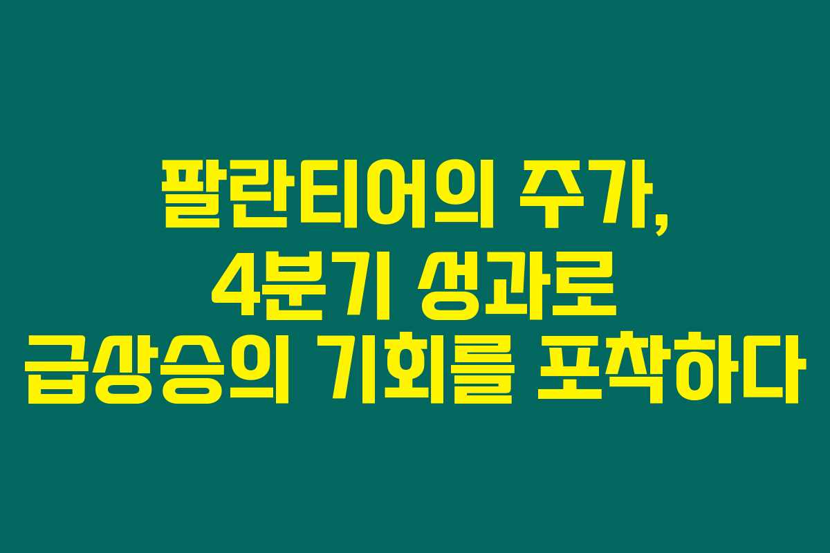 제가 직접 경험해본 결과로는 팔란티어(Palantir Technologies Inc., NYSE: PLTR)는 2023년 4분기 실적 발표를 통해 모든 주요 지표에서 압도적인 성과를 달성했습니다. 이 글에서는 팔란티어의 실적과 함께 주가 성과, 시장 전망 및 AI 솔루션의 수요 증가에 대한 분석을 다루고자 합니다. 아래를 읽어보시면 팔란티어의 주가가 왜 급등했는지 그 배경을 충분히 이해하시게 될 것입니다.