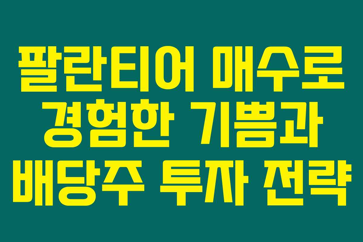 제 경험을 통해 투자에 대한 다양한 관점을 나누었습니다. 팔란티어의 성장은 아직 끝나지 않았습니다. 배당주 투자 전략을 함께 활용하여 여러분도 재정적 자유를 이루어 보세요!