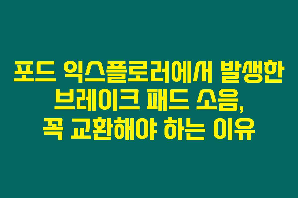자동차의 브레이크 패드는 안전 운전의 핵심 요소 중 하나랍니다. 제가 직접 경험해본 결과로는, 포드 익스플로러의 브레이크 패드 마모로 인한 소음은 결코 가벼운 문제가 아니더라고요. 정기적인 점검을 통해 소음이 발생하기 전에 교환하는 것이 중요합니다. 아래를 읽어보시면, 왜 브레이크 패드 교환이 필수적인지 알 수 있을 거예요.