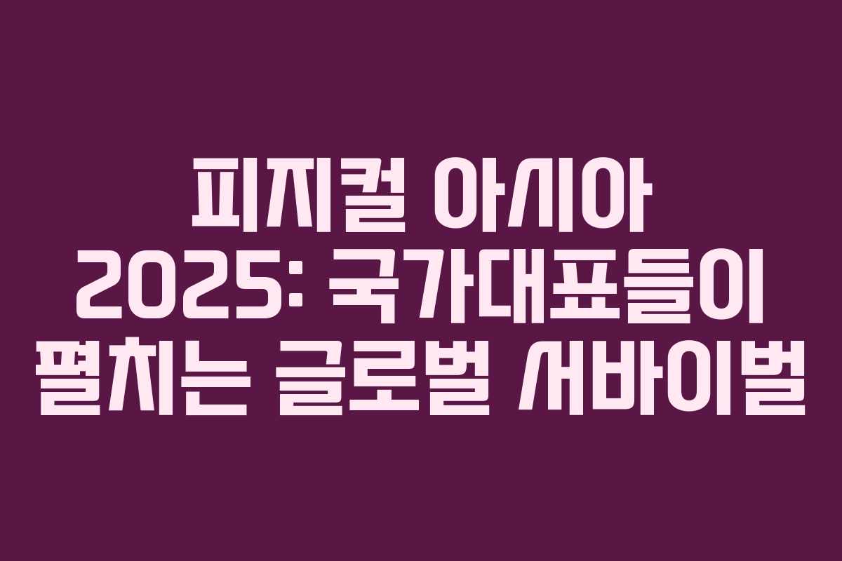 2025년 10월, 넷플릭스에서 공개될 피지컬 아시아는 8개국의 국가대표들이 참여하는 초대형 글로벌 서바이벌 시리즈입니다. 이 프로그램은 단순한 서바이벌을 넘어 각국의 자존심을 걸고 피지컬 한계를 시험하는 대결이 될 것입니다.