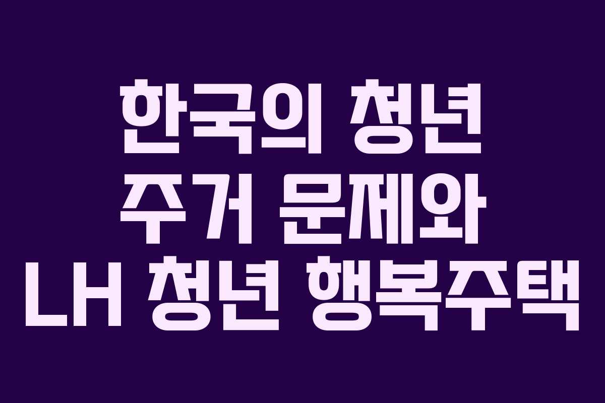 한국의 주거 문제는 청년층에게 특히 심각한 문제로 인식되고 있습니다. 이를 해결하기 위해 정부는 LH 청년 행복주택 프로그램을 운영하여, 청년들에게 안정적인 주거 공간을 제공하고자 합니다.