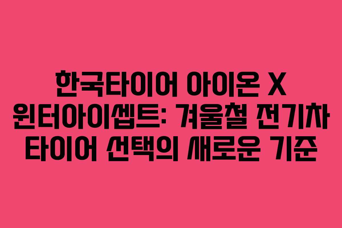 겨울철 전기차 운전은 도전이 될 수 있습니다. 특히, 지난해 경험에서 보았듯이 적절한 겨울 타이어를 선택하는 것이 얼마나 중요한지를 깨달았습니다. 이번 겨울에는 한국타이어의 아이온 X 윈터아이셉트를 장착하여 안전하고 쾌적한 주행을 기대하고 있습니다.