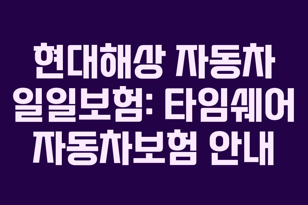 현대해상에서 제공하는 자동차 일일보험, 즉 타임쉐어 자동차보험은 일시적으로 타인 소유의 차량이나 렌트카를 운전할 때 필요한 필수 보험입니다. 이 보험은 짧은 기간 동안의 운전을 안전하게 보장합니다.