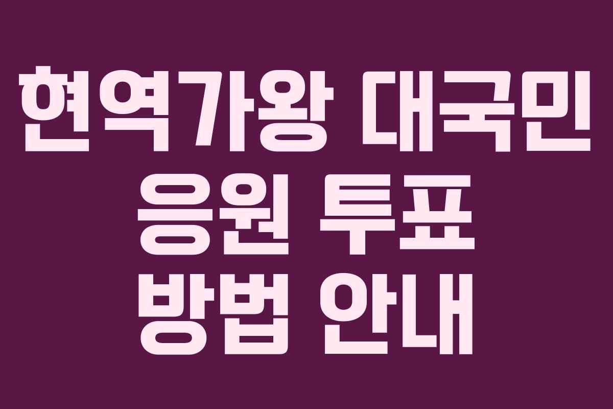 현역가왕 프로그램은 2024년 ‘한일 트롯 가왕전’에 나갈 대한민국 대표 여성 트로트 가수를 선정하기 위한 서바이벌 음악 예능입니다. 이 프로그램에서는 대국민 응원 투표를 통해 TOP 7 가수를 뽑고 있으며, 투표 방법을 자세히 안내드립니다.