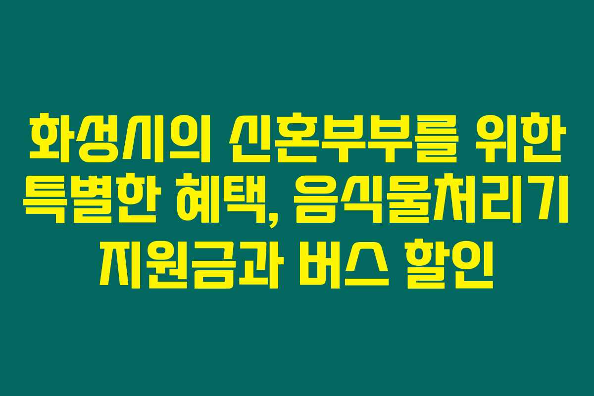 최근 화성시는 신혼부부를 위해 제공하는 다양한 혜택 중에서 음식물처리기 지원금과 버스 할인으로 많은 주목을 받고 있어요. 이 두 가지 혜택을 잘 활용하면 삶의 질을 높이고 경제적인 부담을 줄일 수 있습니다. 아래를 읽어보시면 화성시가 제공하는 이 두 가지 지원에 대해 자세히 알아보겠습니다.
