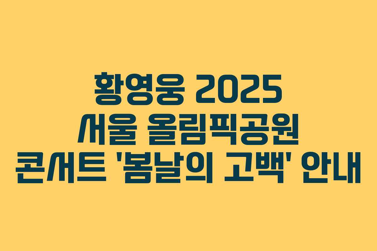 2024년 황영웅의 전국투어 콘서트가 ‘봄날의 고백’이라는 주제로 서울에서 열립니다. 이번 공연은 서울 올림픽공원 올림픽홀에서 진행되며, 팬들과의 특별한 소통을 위한 자리로 마련되었습니다.