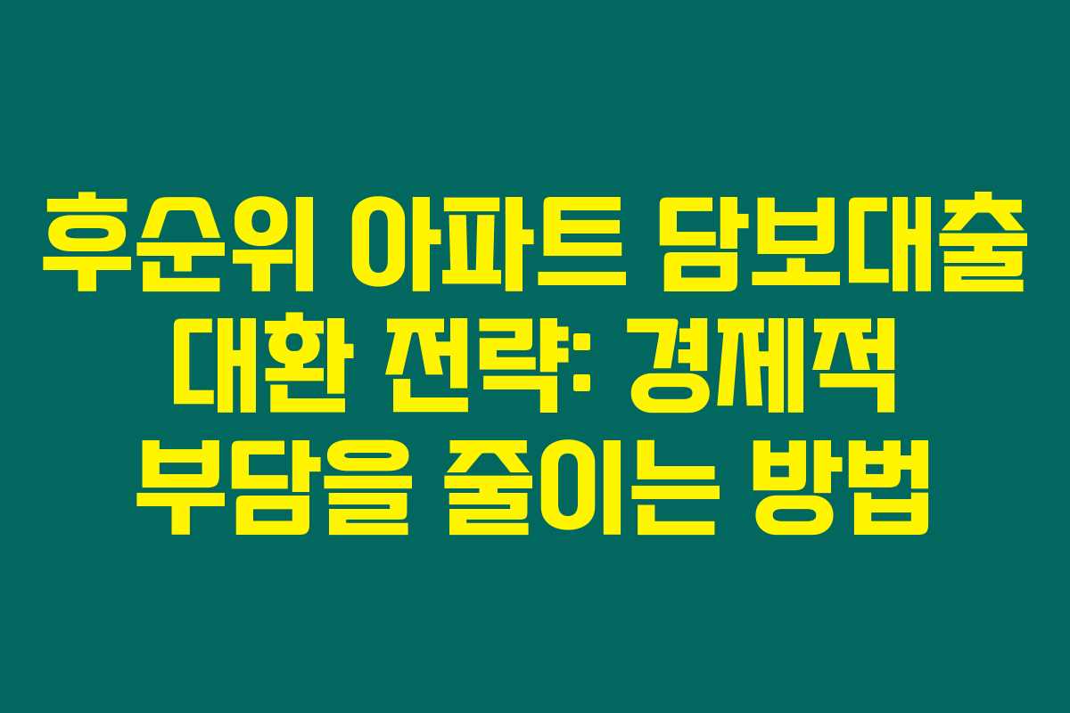 후순위 아파트 담보대출 대환 전략: 경제적 부담을 줄이는 방법