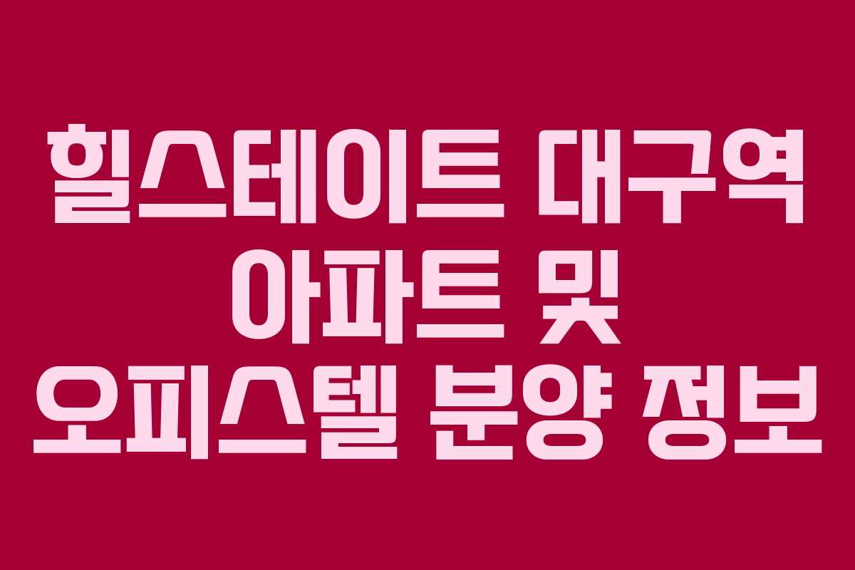 힐스테이트 대구역은 대구 중구에 위치한 신규 아파트 단지로, 다양한 타입의 아파트와 오피스텔을 제공하고 있습니다. 본 포스팅에서는 각 타입의 내부 구조와 분양 가격에 대해 자세히 알아보겠습니다.