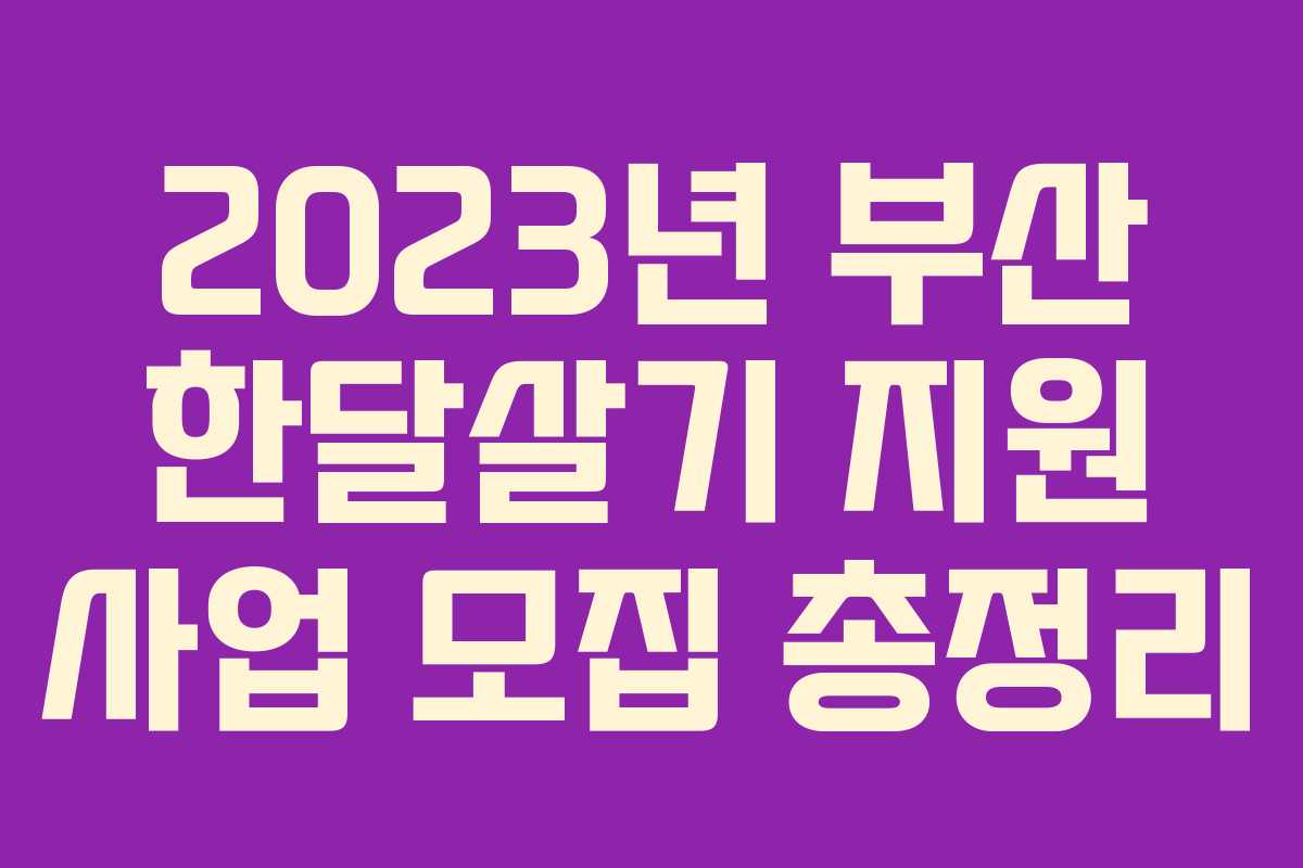 2023년 부산 한달살기 지원 사업이 시작되었습니다. 이 프로그램은 부산시에서 여행비 일부를 지원하여 참가자들이 부산에서 한 달간 살며 홍보 활동을 수행하는 기회를 제공합니다.