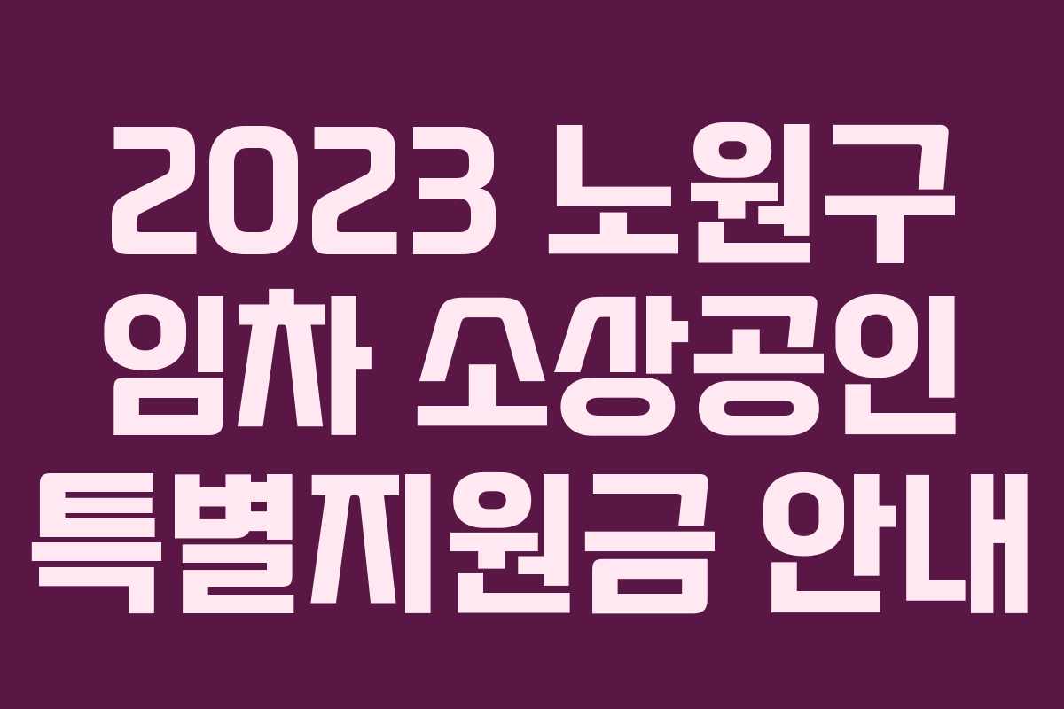 2023년 노원구 임차 소상공인 특별지원금은 지역 내 소상공인들에게 경제적 지원을 제공하기 위한 중요한 프로그램입니다. 신청 기간과 조건을 잘 확인하시고 신청하시기 바랍니다.