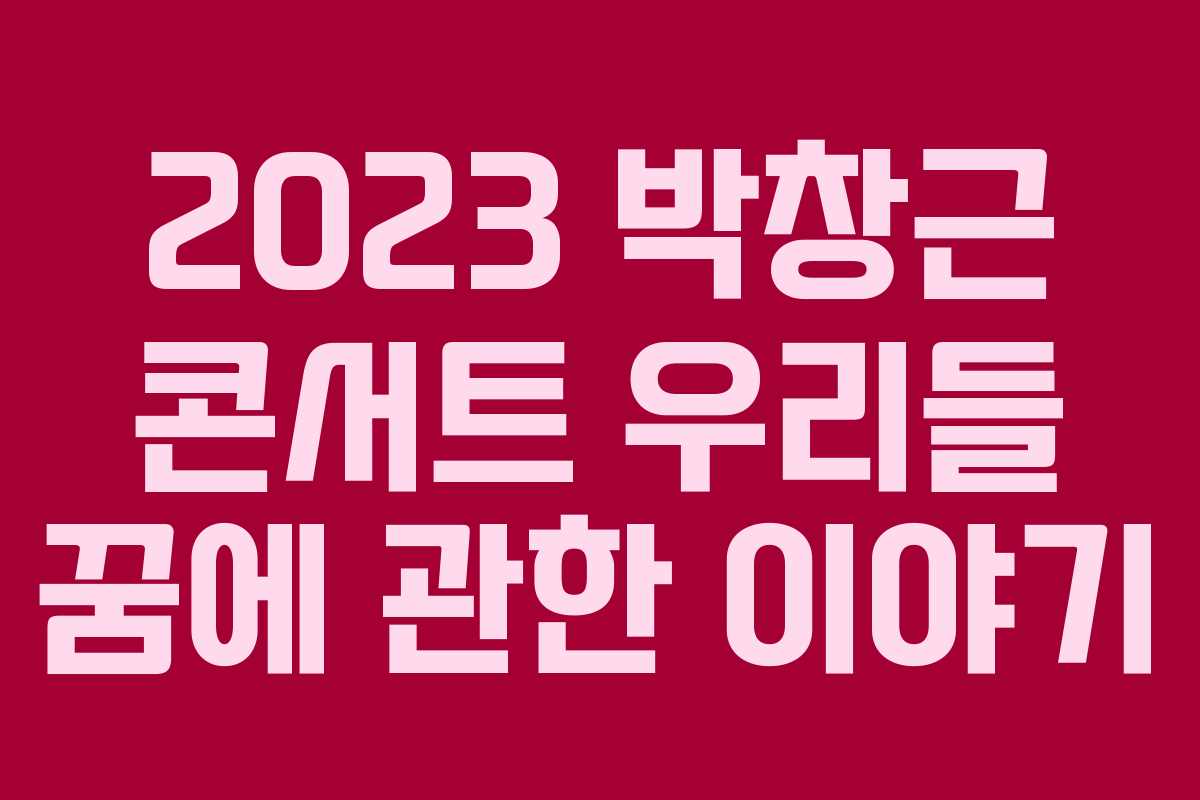 2023 박창근 콘서트 ‘우리들 꿈에 관한 이야기’는 지난날의 소중함과 꿈에 대한 이야기를 담고 있습니다. 박창근은 관객들과 함께 꿈을 향해 나아가는 시간으로 초대합니다.