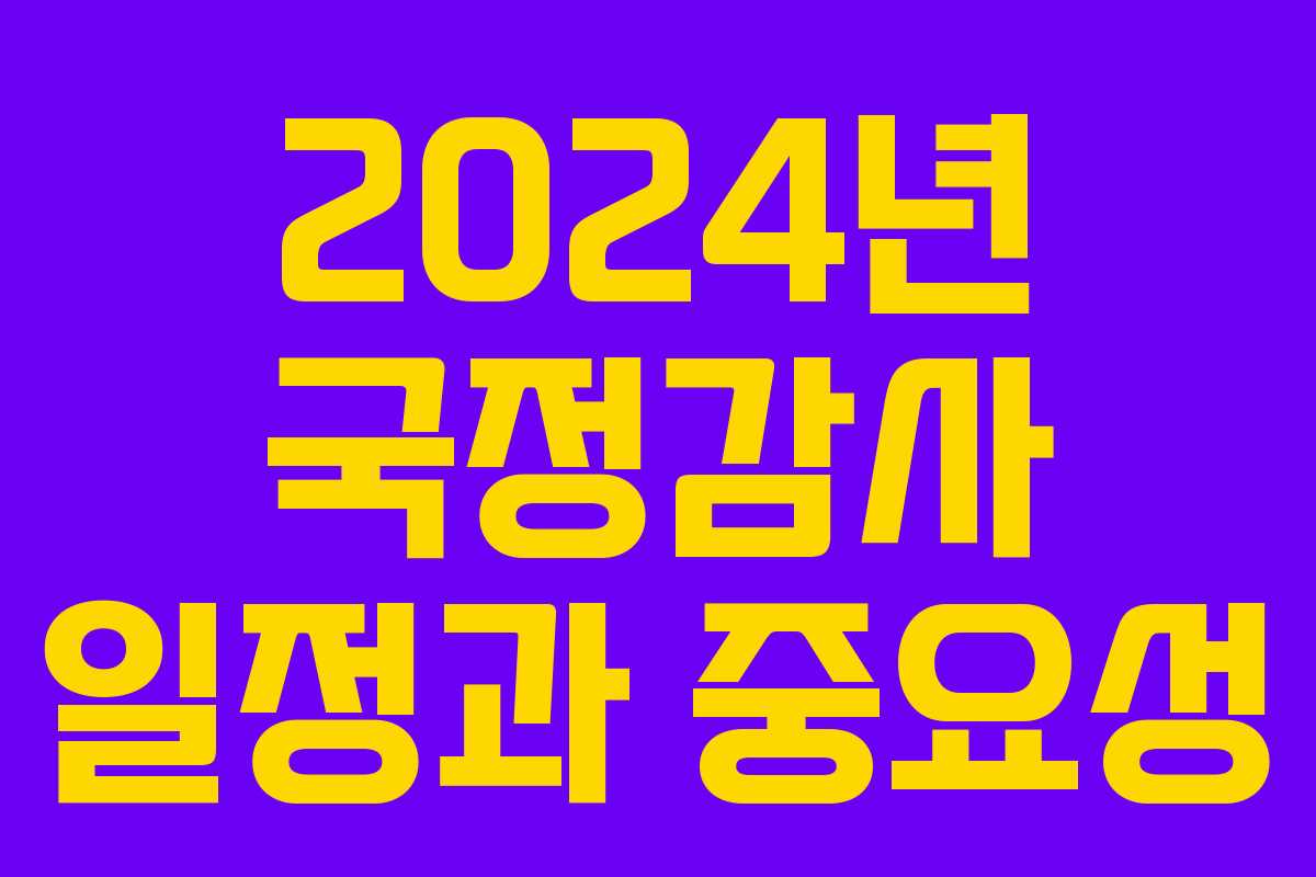 2024년 국정감사는 10월 7일부터 10월 25일까지 진행될 예정입니다. 이번 국정감사는 정부와 산하 기관들의 정책 및 업무 수행 상황을 점검하는 중요한 과정입니다.