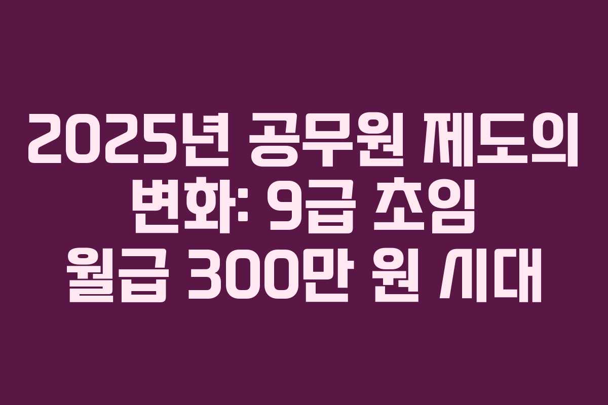 2025년 공무원 제도의 변화: 9급 초임 월급 300만 원 시대