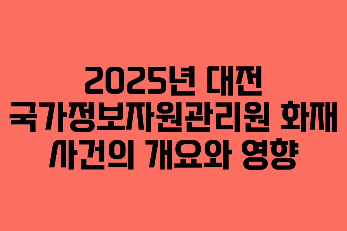 2025년 9월 26일 대전 유성구에서 발생한 국가정보자원관리원 화재는 정부 IT 시스템에 심각한 영향을 미쳤습니다. 이 사건은 리튬이온 배터리 교체 작업 중 발생한 화재로, 국가 전산망의 마비를 초래했습니다.