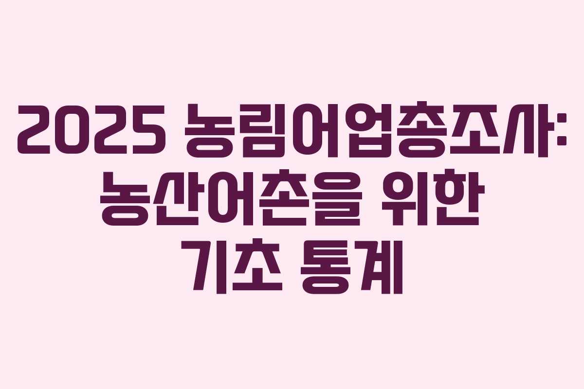 2025년 농림어업총조사는 대한민국의 농림어가에 대한 중요한 통계 조사로, 농업과 어업의 규모와 구조, 분포 및 특성을 파악하는 데 목적이 있습니다. 이 조사는 국가의 농산어촌 정책 수립에 기여하는 기초 자료로 활용됩니다.