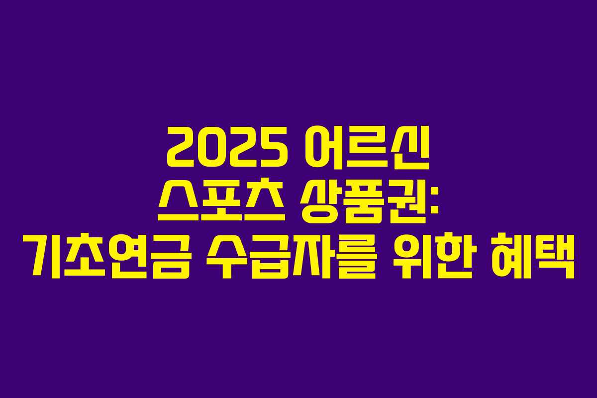 2025년부터 만 65세 이상의 기초연금 수급자에게 어르신 스포츠 상품권이 지급됩니다. 이 상품권은 어르신들이 보다 건강한 생활을 영위할 수 있도록 돕기 위해 마련된 제도로, 총 10만 원이 지원됩니다. 이번 글에서는 신청방법, 사용처, 사용기한 등 자세한 정보를 안내합니다.