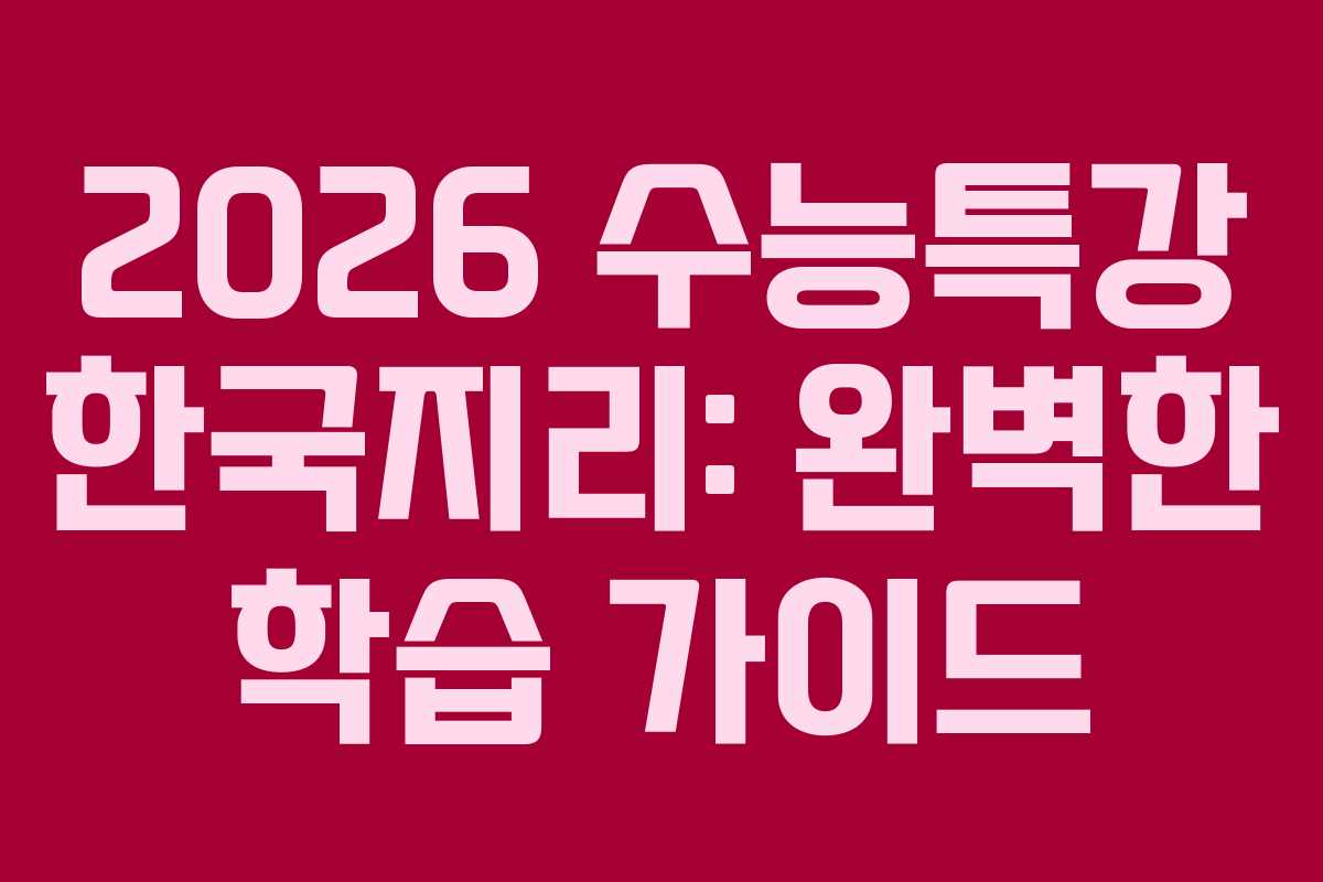 2026 수능특강 한국지리: 완벽한 학습 가이드
