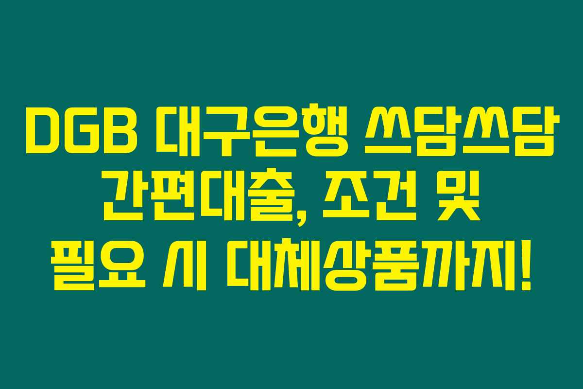 DGB 대구은행의 쓰담쓰담 간편대출은 이제 많은 분들이 쉽게 접근할 수 있는 상품이에요. 필요할 때 이 정보를 활용해서 꼭 필요한 자금 관리를 잘 해보아요!