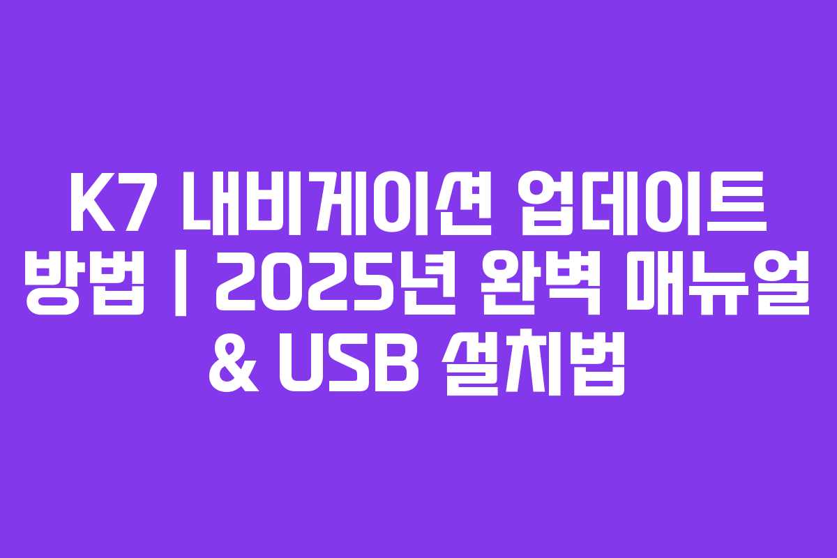 K7 내비게이션 업데이트 방법|2025년 완벽 매뉴얼 & USB 설치법