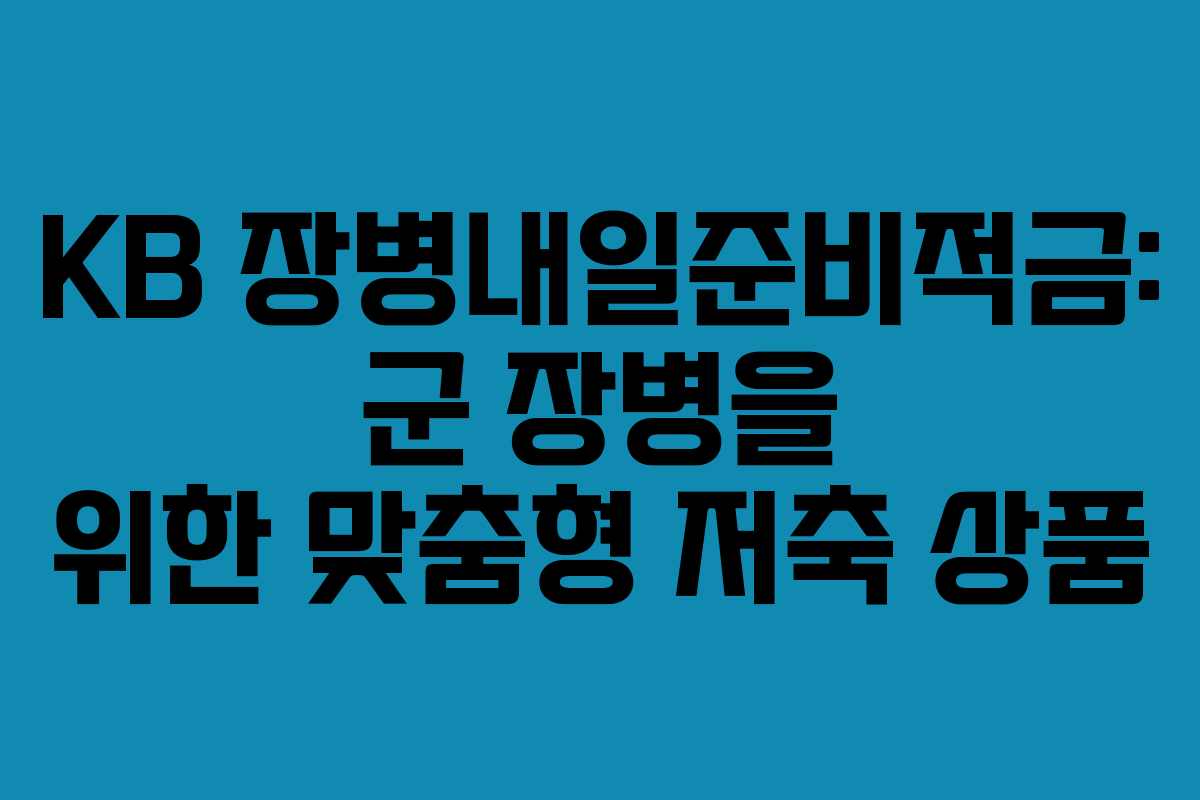 국군 장병들을 위한 KB 장병내일준비적금은 자유로운 기간 선택과 충분한 저축 금액으로 목돈 마련에 큰 도움이 될 수 있습니다. 이 적금 상품을 통해 경제적 자립을 준비해보시기 바랍니다.