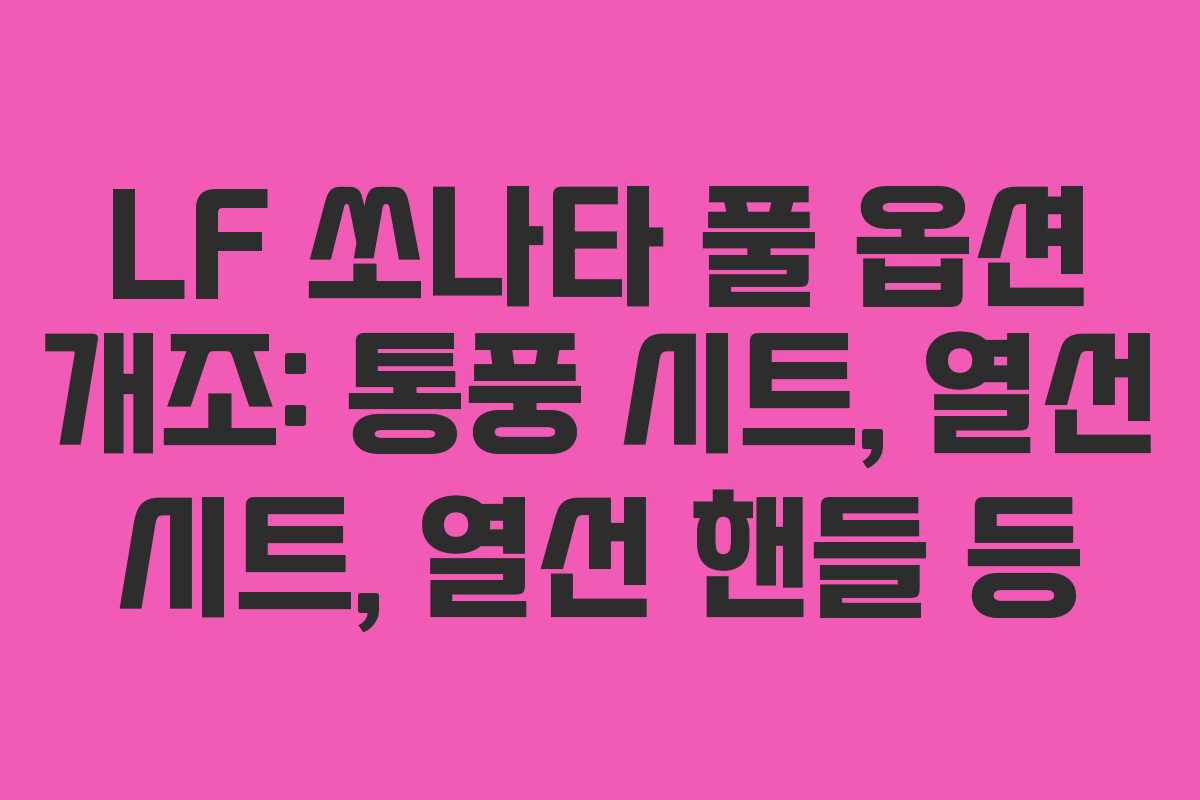 국산차 LF 쏘나타의 통풍 시트, 열선 시트, 열선 핸들, 전동 시트, 오토 공조기 장착으로 차량의 편의성을 극대화하는 방법을 소개합니다. 이러한 옵션을 추가하면 사계절 내내 쾌적한 드라이빙이 가능해집니다.