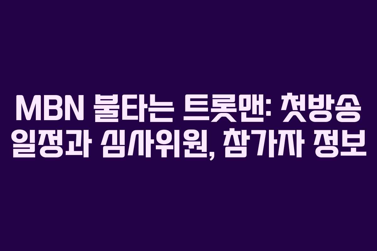 MBN의 새로운 트롯 서바이벌 프로그램인 ‘불타는 트롯맨’은 한국의 트롯 열풍을 이어갈 것으로 기대되는 예능입니다. 이 프로그램은 서혜진 PD가 연출하며, 첫 방송은 2022년 12월 20일 화요일 밤 9시 10분으로 예정되어 있습니다. 매주 화요일 같은 시간에 방송될 예정입니다.