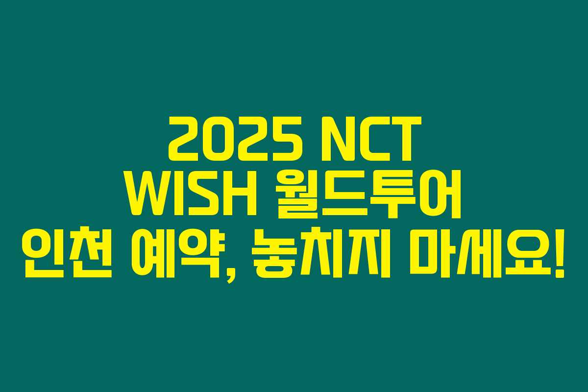 NCT의 팬이라면 놓쳐서는 안 되는 기회! 2025년 NCT WISH 월드투어 인천 예약이 시작됐습니다. 이 글을 읽고 예매 방법과 혜택을 확인해 보세요! 잊지 말고 예약하세요, 행복한 순간이 기다리고 있어요.