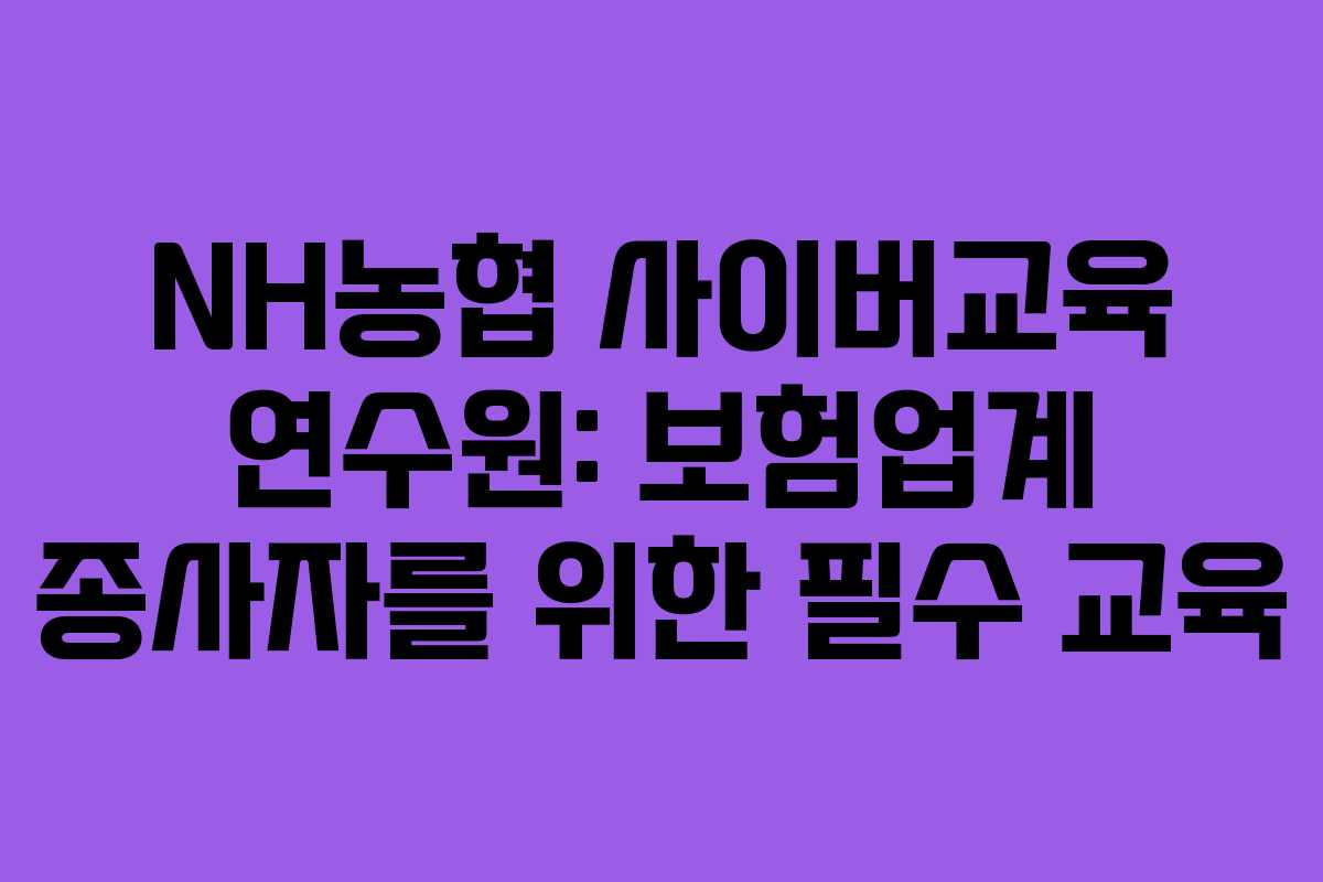 NH농협 사이버교육 연수원은 보험업계 종사자들을 위한 전문 교육 기관으로, 보수교육을 포함한 다양한 프로그램을 제공합니다. 보험설계사, 보험대리점, 보험중개사 등은 이곳에서 제공하는 교육을 통해 최신 정보와 기술을 습득할 수 있습니다.