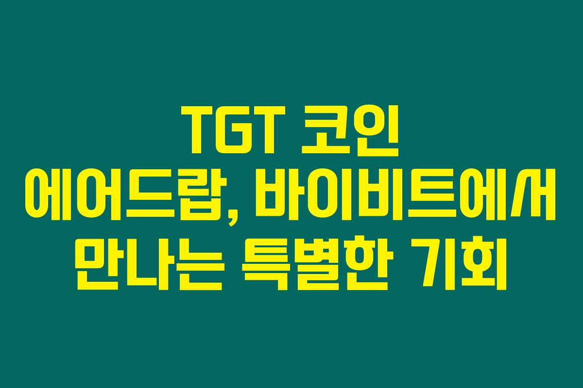 이번 TGT 코인 에어드랍은 암호화폐 투자자에게 좋은 기회이므로, 관심 있는 분들은 미리 준비하셔서 참여해 보시길 바랍니다. 새로운 암호화폐를 통해 더욱 풍성한 경험을 쌓으실 수 있을 거예요.